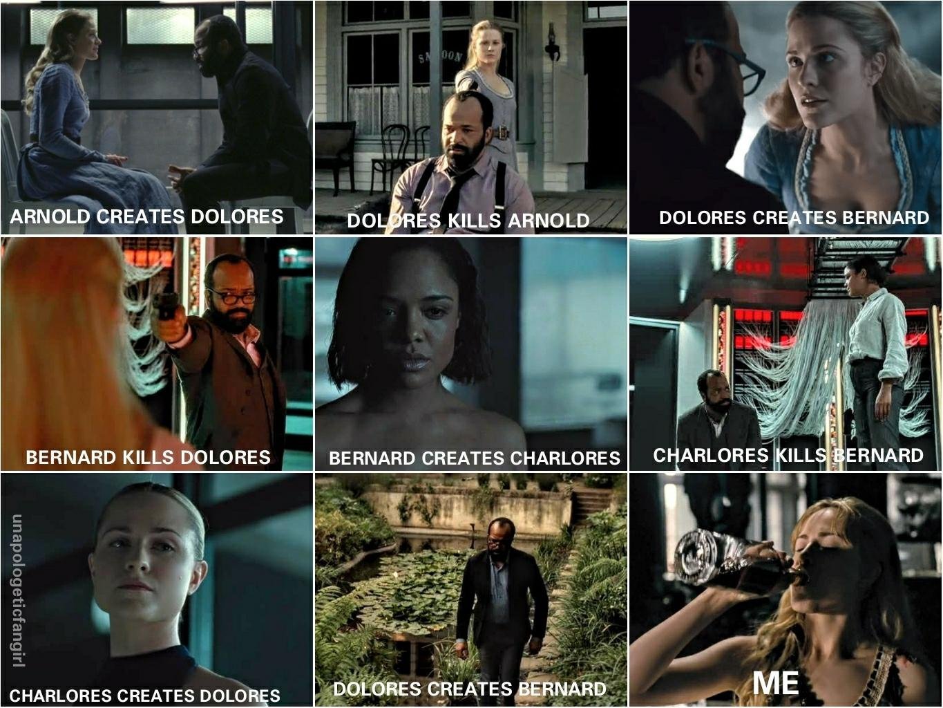 И на мен ми е интересно за Долорес. Ако ще превзема човешкия свят с поставени лица, би било по-лесно да си репликира съзнанието и да си принтира тела или поне да не е в собственото си. Но вече са потвърдили, че в тялото на Шарлот е друг и няма няколко Долорес. Може да се местят от тяло в тяло.