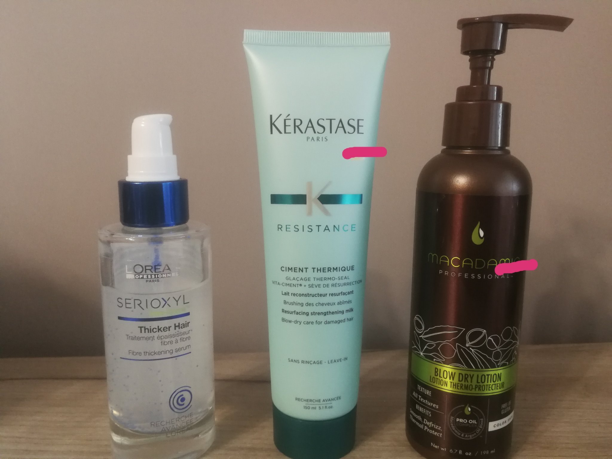 Термозащитен крем Macadamia, количеството е до розовата черта.