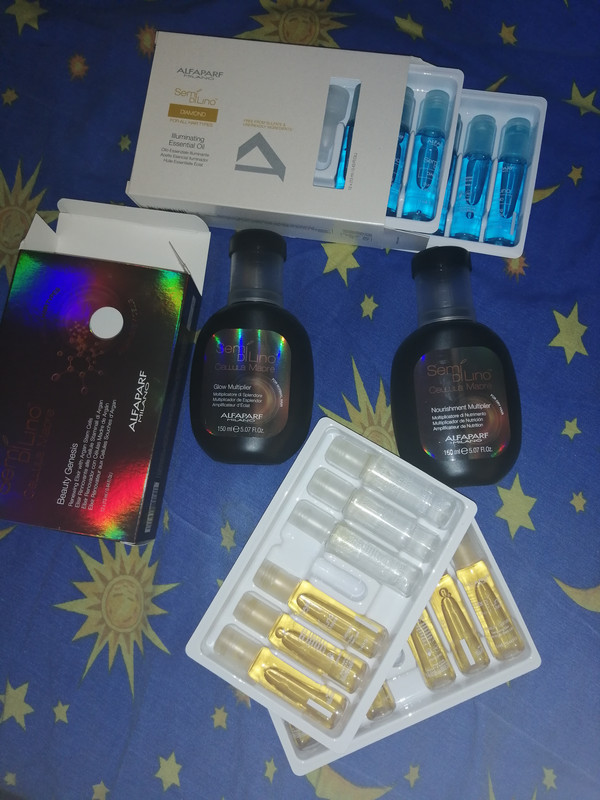 1. Терапията SEMI DI LINO Cellula Madre 9 ампули плюс подхранващия и тоя за блясък концентрати,плюс 11 ампули за блясък,които се ползват за запечатване след терапията.