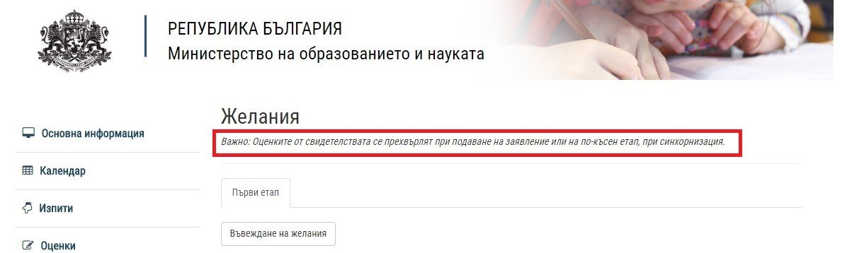 Приложението може да бъде подадено онлайн на уебсайтовете priem.mon.bg или 7klas.mon.bg, в училище, което предоставя помощ при кандидатстване, или в училище-гнездо. Когато се подава хартия в училище-гнездо, първо се проверява дали вече е подадено заявление онлайн. За професионална паралелка трябва да се прикачи медицинско свидетелство във формат PDF с вписан номер на ученика за влизане в името на файла. Натискането на бутона „Запазване“ финализира подаването на заявлението, което не може да бъде редактирано след това.