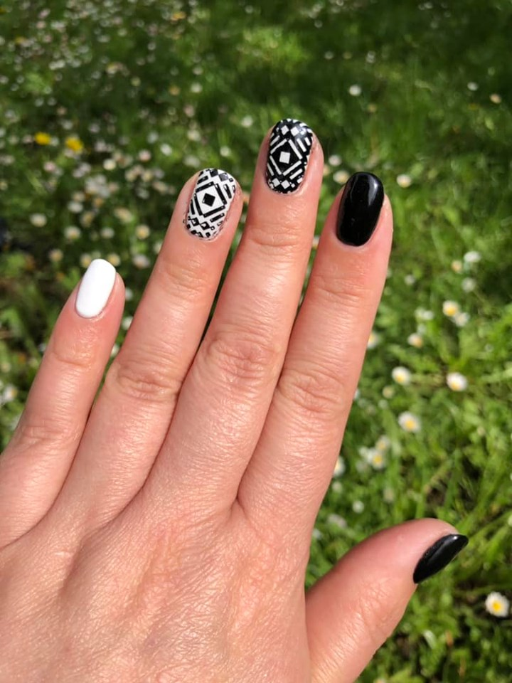 Благодаря, момичета! Напоследък този тип декорация ми допада най-много, два цвята с напечатани два пръста Simple Smile
