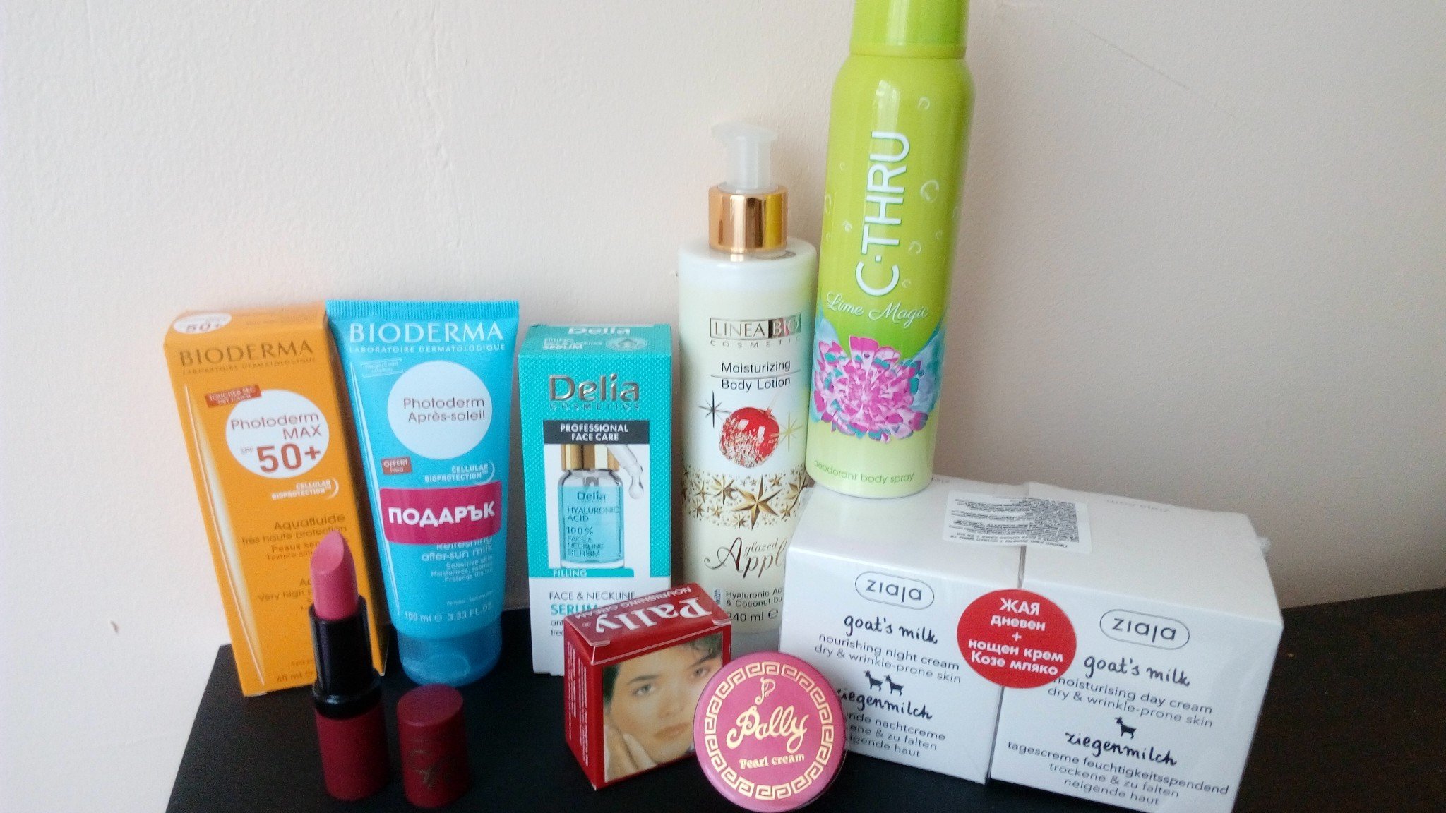 От тези продукти единствено съм ползвала Аквафлуда на Bioderma за поредна година. Дори и подарък имах към покупката. Но много ме заинтригува този крем "Pally". Снимах и листовката, за да прочете. Не че вярвам, че ще се справи с всичко написано. Цената му е 1,79лв и беше забито най-отдолу на стелажа в  Ремедиум 4. Кремовета на Жая бах на промоция в Lilly за 6,99лв. И лосионът за тяло ми е интересно дали ще е хубав, но ще видим по-нататък. Grinning