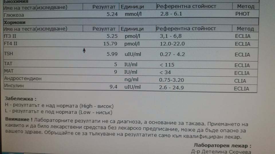 ТСХ е висок, имаш Хипофункция на ЩЖ. Трябва терапия с медикамент.