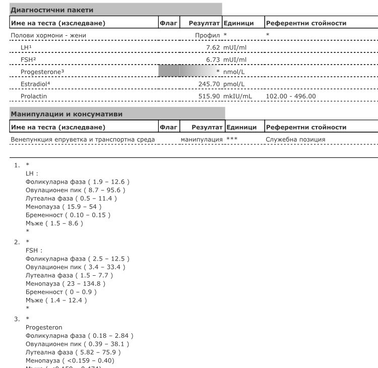 Здравей Денис, моля за мнение за резултатите: правени са на 23-ти ден след доказана овулация с фоликуметрия около 15-16ти ден. Стояла съм в покой не повече от 5 минути в лабораторията.