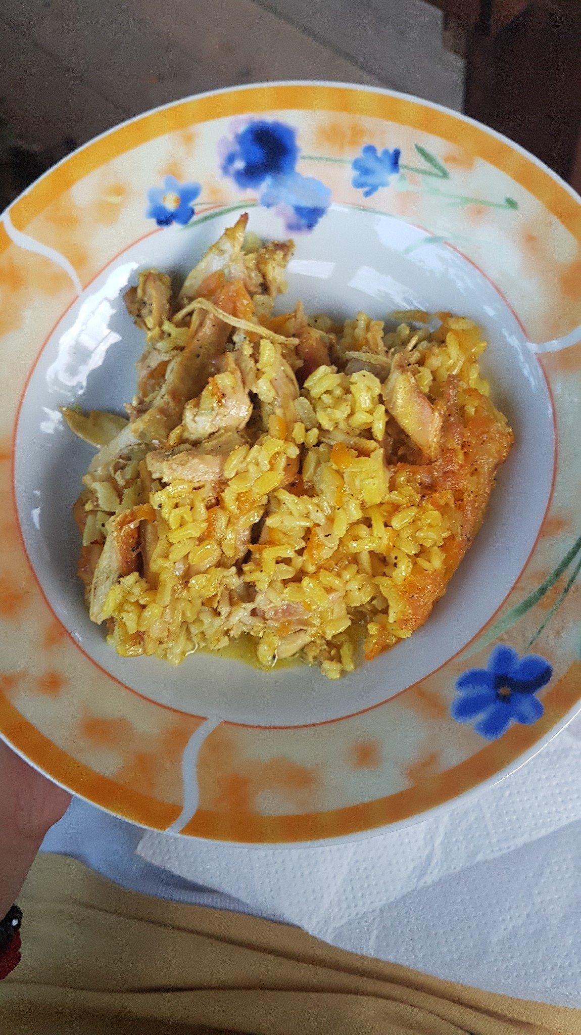 От мен пълнозърнест ориз с пилешко и многооо куркума .