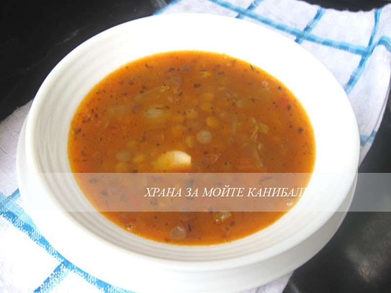 Сал една леща от вчера, дето ще хапваме днес, ако не се появи милото скоро, да ми нареже лук, пуешкото и домати.