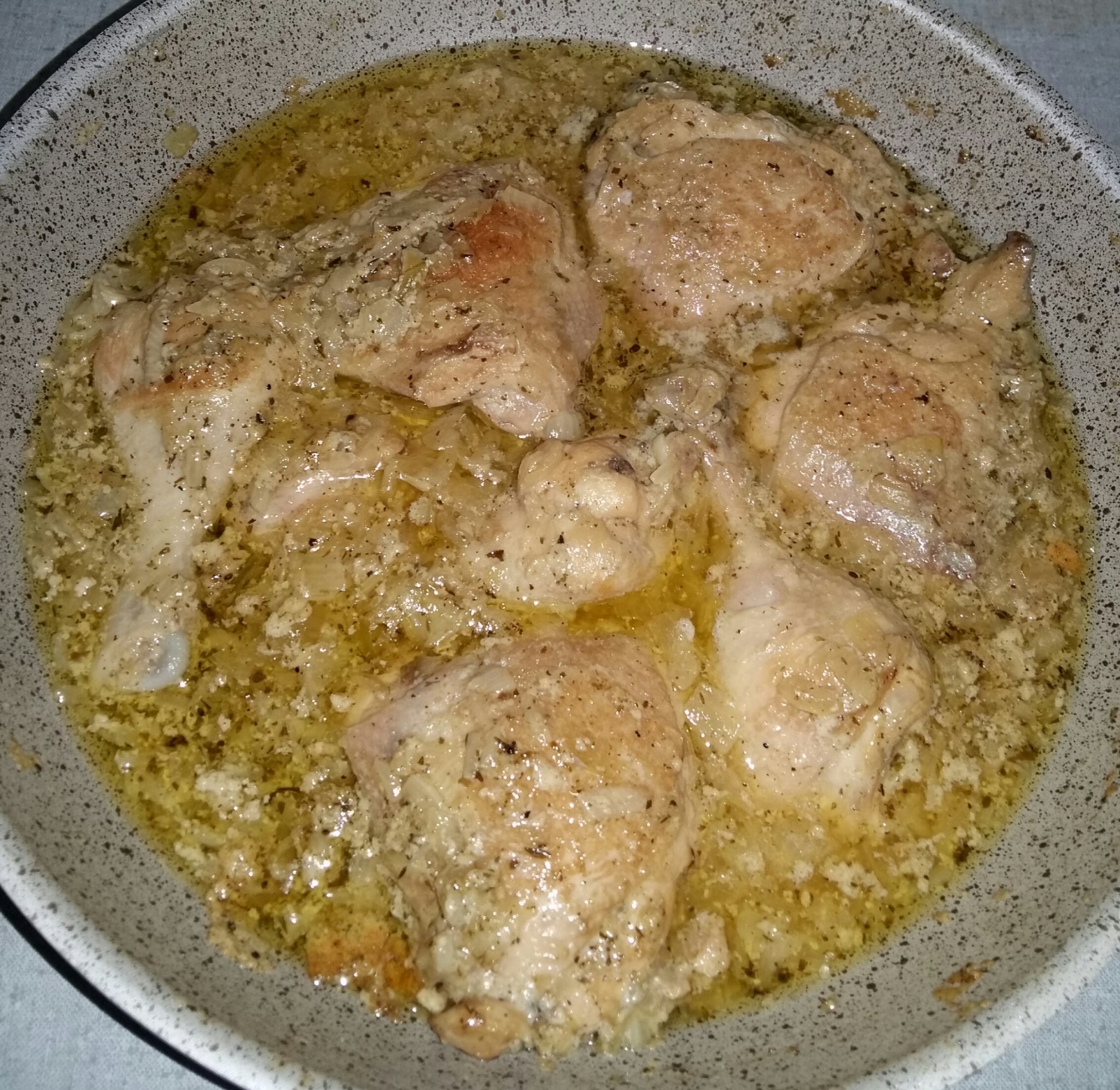 Пилешко с много лук и сос с прясно мляко, пълна импровизация, направо от тигана.