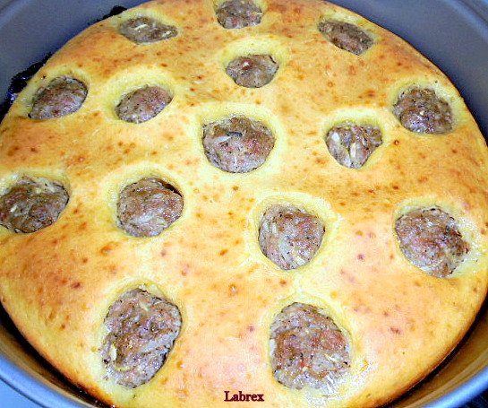 vikonetka, ето това е питката с кюфтенца: "МЪЖКА ТОРТА" (ПИРОГ С КЮФТЕНЦА). Когато попаднах на рецептата, вкъщи много се хареса и често го забърквах. Отдавна не бях го правила тоя пирог и не знам как се присетих за него. Не ми се правеше супа топчета, сигурно затова! Simple Smile