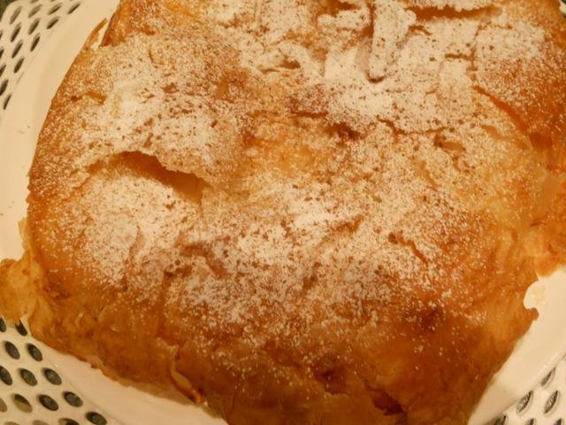 Бугаца с крем от грис, страшно е добра,  както я занесох така и изчезна, невидЕ се,  Joy  освен това се приготвя за има-няма 20 мин. + 30 мин печене, за 50 мин съм готова.  Аз опитах едно мъъъъничко парченце, стига толкова, че ще го залепя на дупето си, а не трябва, жалко. Wink