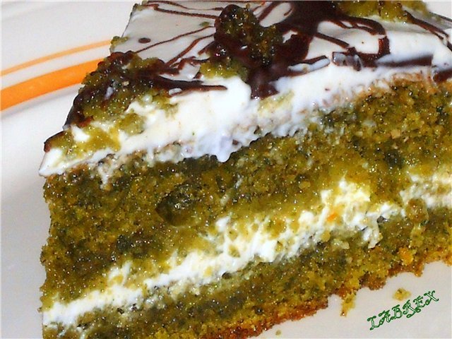 AnyHr, понеже тия дни я коментирахме в темата за бързите въпроси, това е разкошната спаначена торта на lichtstrasse, много е хубава и, ако не обясняваш що е зелена, т.е. може да кажеш, че е сладкарска боя, народът яде, та ушите му плющят. Моите вкъщи, и приятелите също, малко се мръщеха, като чуят, че има спанак или коприва, защото е непривично, ама това на първо време, после що пъти я печатах и раздавах тая рецепта, хич не им пречеше, чудесна тортичка става.  Peace