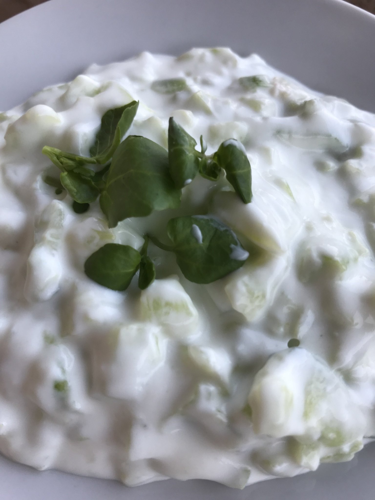 . Сосът е млечен с чесън и арабска подправка, която придава много ориенталски вкус