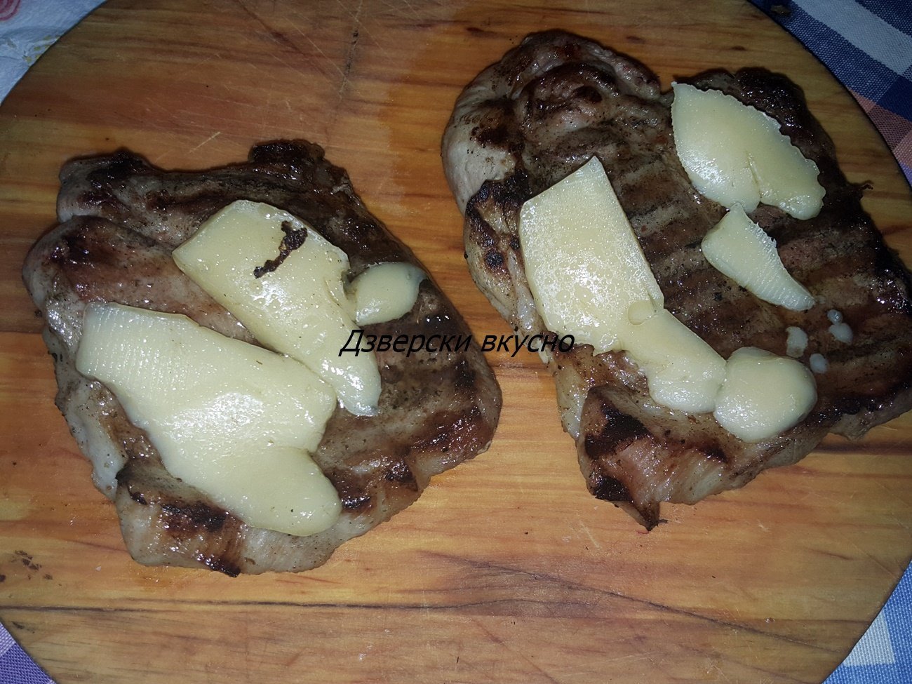 Иначе скромно: 24 мариновани пържоли, за кратко на скарата и кашкавалче отгоре им. Идва и ракиеното време и наздраве!