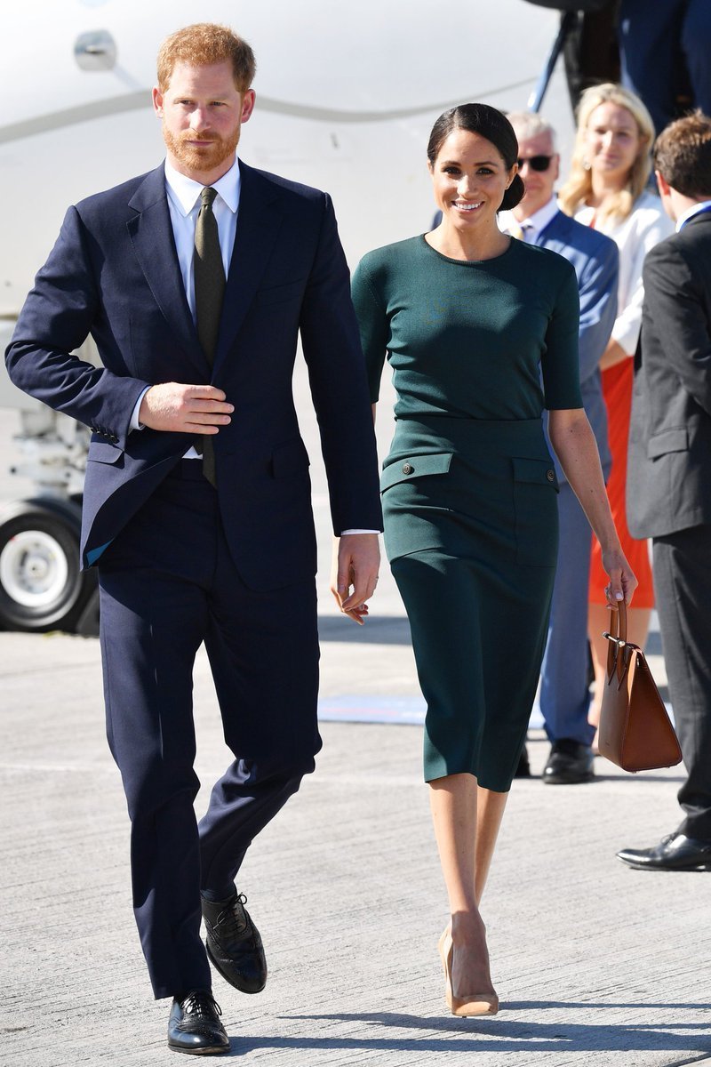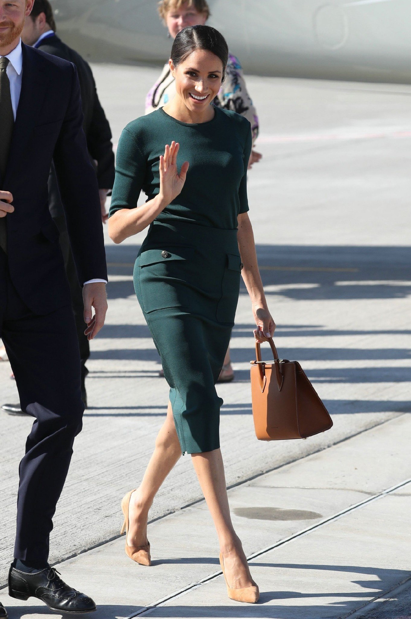 Меган на последните изяви изглежда добре, но наистина в сравнение с другите и на мен ми идва overdressed. Зелената рокля като кройка е страхотна, но цветът на нея... мхм не. Днешната рокля е перфектна с изключение, че не е подходяща за дневна визита. Този модел много добре й седи. И ми изглежда все така тъмна ...