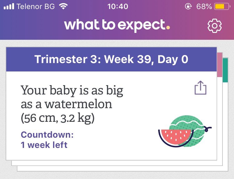 Терминът ми е 01.8, а и бебка е мъничка още- някъде около 2,200.И само да вметна - в h&m има намаление, аз успях да си харесам едно чувалче. Хубав ден, момичета