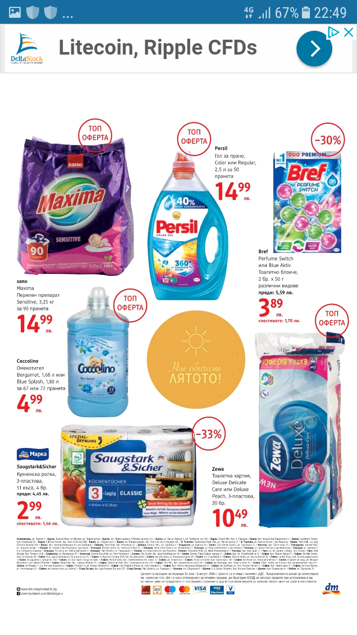 На 05.08 в Била 25%  ще има намаление на всички перилни препарати и омекотители.