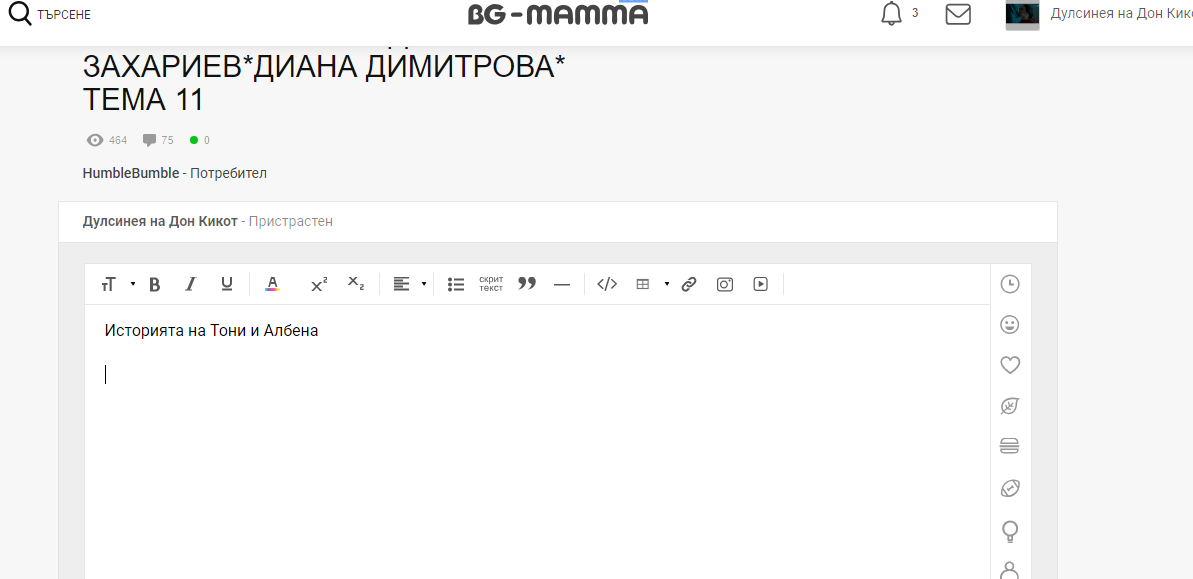 Форумът споменава книга със заглавие „Любовта на 45-годишния мъж“ от Кали Терзийски, която е посветена на Диана. Участниците в дискусията споделят, че главната героиня в книгата е наречена „Д.“ и че съвпада точно с нея, като се описва като млада жена на 22 години, което предизвиква любопитство участниците да прочетат повече.