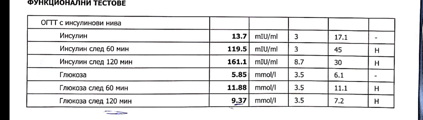 Алфа- бета, да. Има много бълван инсулин и при теб, като гледам. Впрочем, някъде четох, че хиперинсулинемията и ИР не са точно едно и също, но така и не разбрах разликата. И при двете има голямо количество, но може би е нещо с кръвната захар. На мен на 4-тия час, както казах, ми беше дори под нормата захарта. Не знам как така на гладно над 5, а след глюкоза, макар и четири часа по- късно- 3.