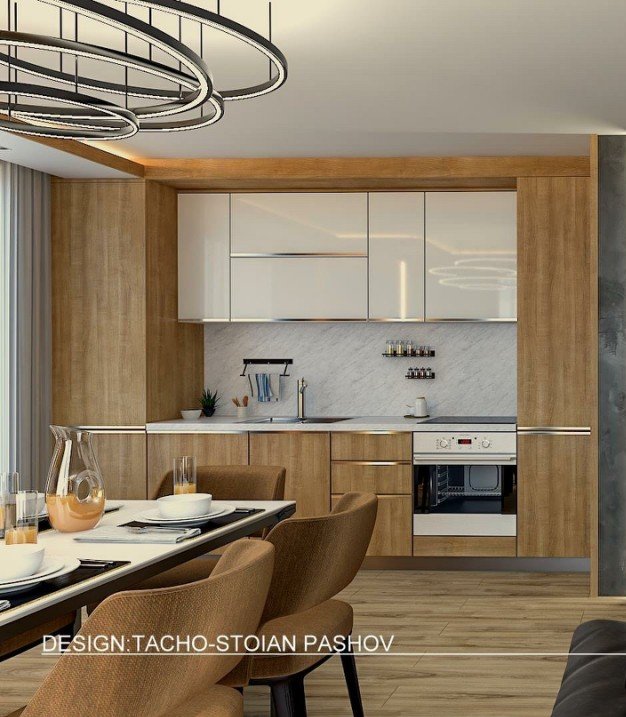Според мен малко се слива гърба с горните шкафове Thinking Може би ако гръбчето е малко по-тъмно или съответно горните шкафове са в някакъв друг цвят Wink