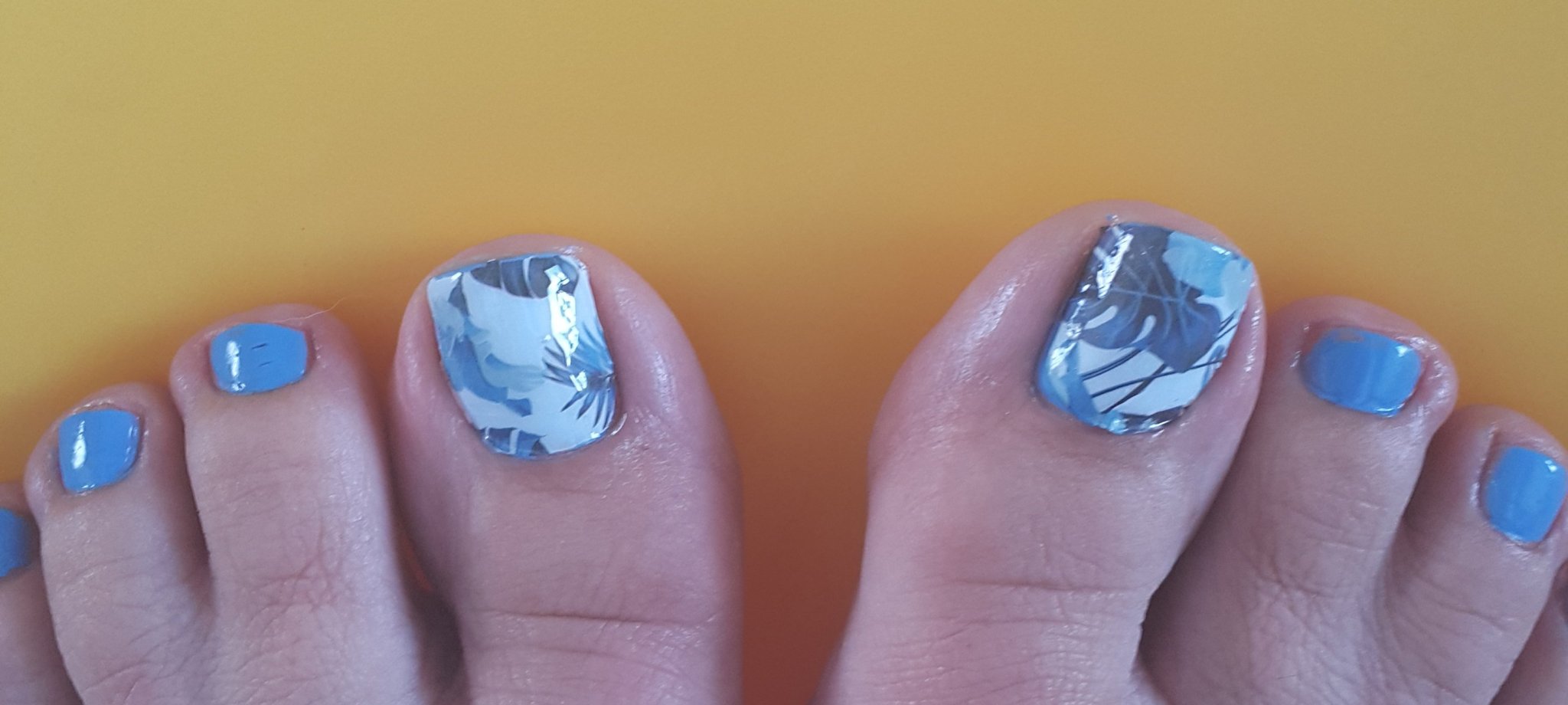И на педикюра е подобно-същите цветове и печат на палеца, но без лепенки. Не съм го снимала още. Не ми е дошло ред, хаха. Simple Smile