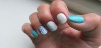 Ето моят последен, настоящ маникюр. Правих го преди работа/вечерна смяна/, бързах, и с оглед на това, че не зная и колко време ще го "държа", а и позагубен тренинг за ръцете-не ми се получи особено добре, но пак съм доволна. Wink