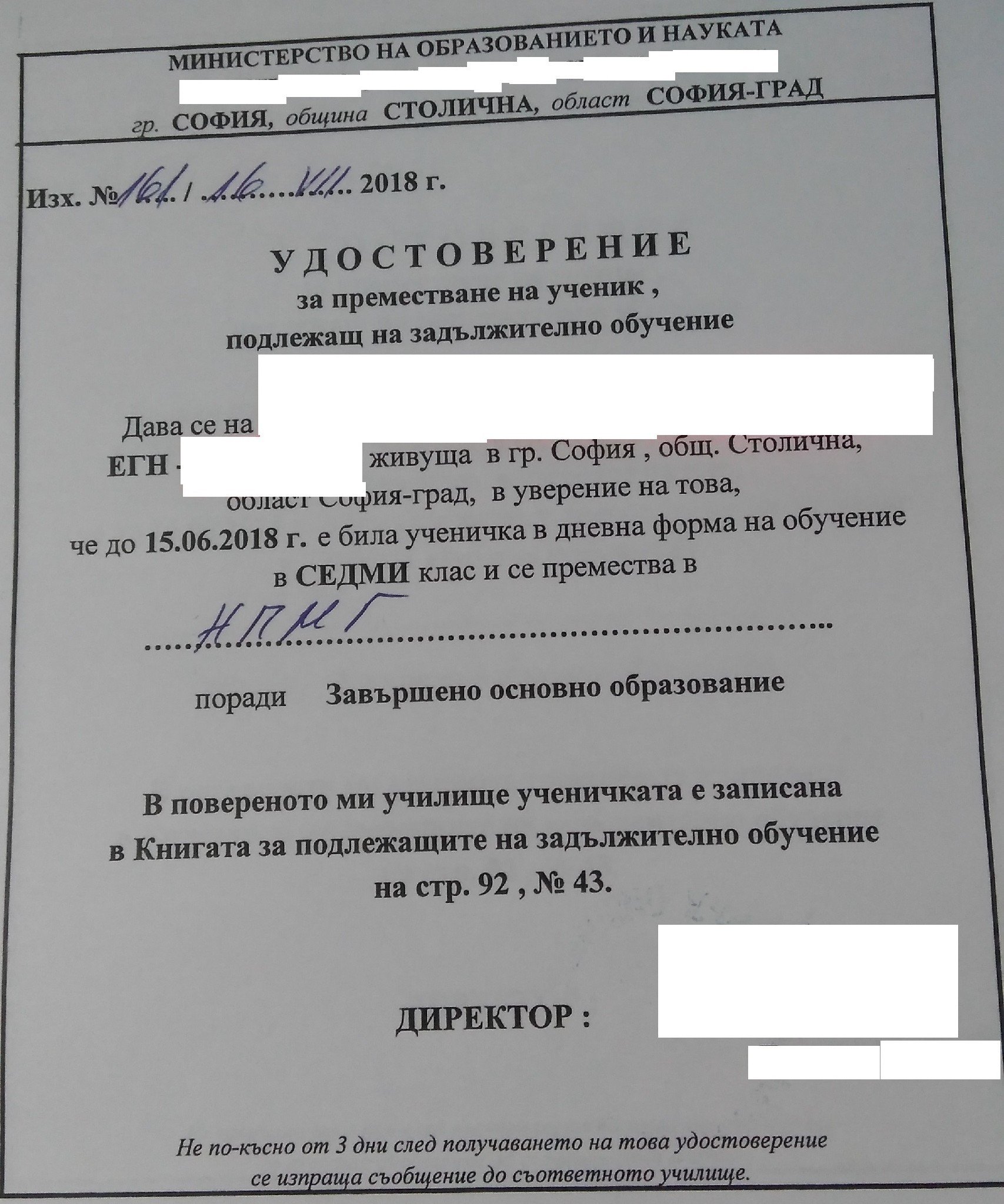 . В същото е отразено, че "Не по късно от 3 дни след получаването на това удостоверение се изпраща съобщение до съответното училище"