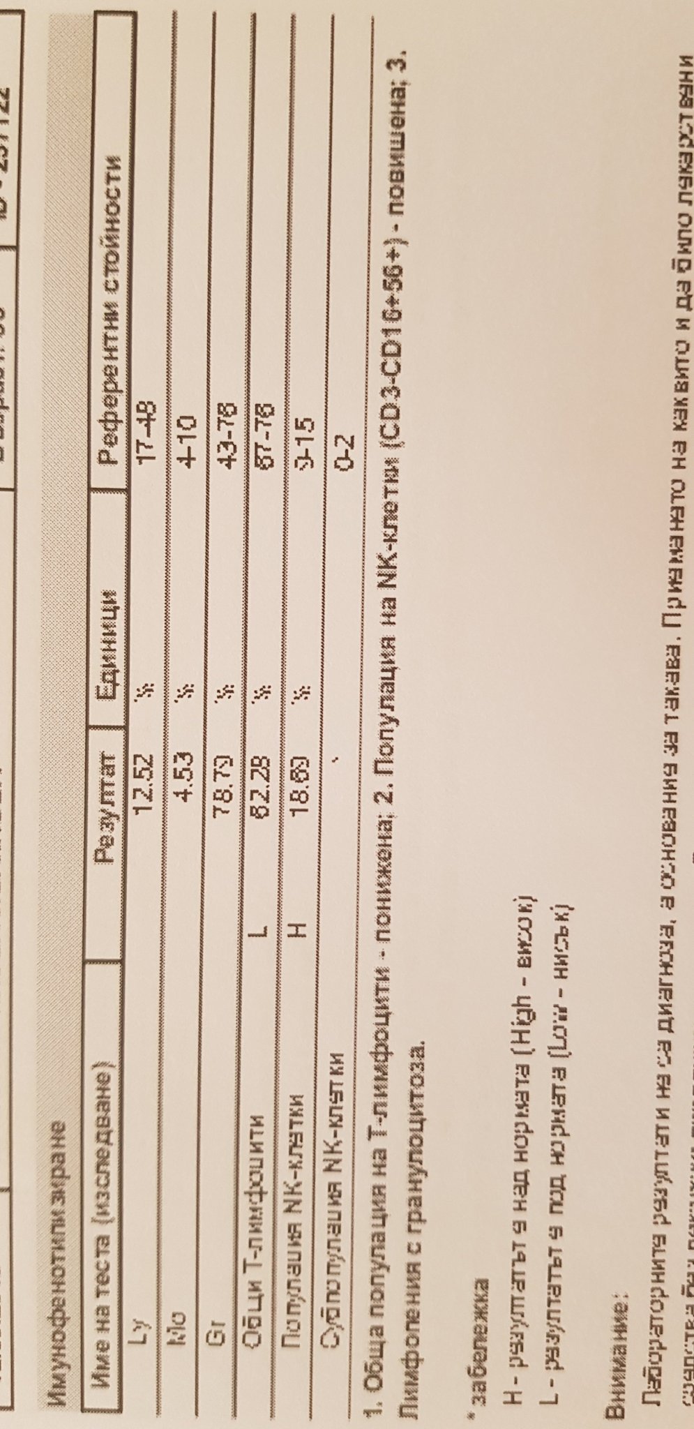 И някой знае ли какво означава лимфопения с гранулоцитоза..?