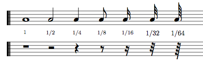 Както броиш и нотните трайности... ако си представиш метроном (или тик-такане на часовник, или каквото и да ти хрумне, което да отмерва равни интервали от време), ако цялата нота е 4 изтраквания - т.е. 4 "мълчания".