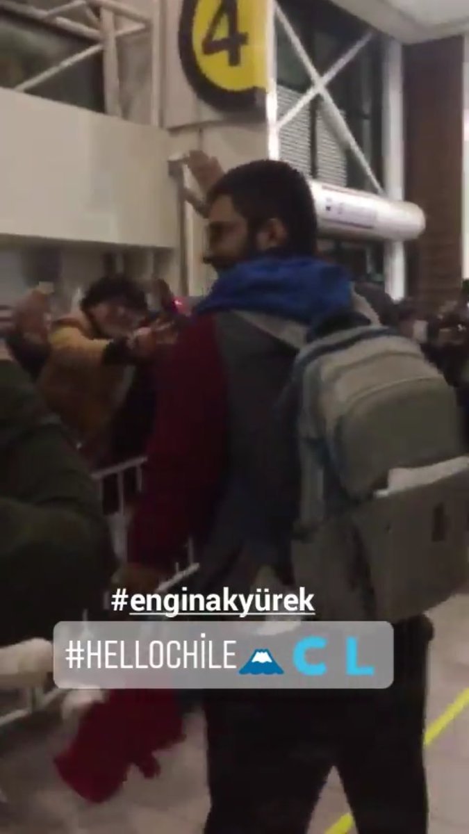 Посрещането в Чили е излязло извън контрол, вероятно охраната не е очаквала фенките толкова да се активизират ,а пък настане ли суматоха под всеобщия натиск и желание да се докоснеш до идола си много трудно е да се овладее .Моят опит е като придружител на децата при фен-среща с един техен идол от компютърните игри - такова блъскане и гонене на човека от хлапетата беше ,че и аз в навалицата да не изпусна моите 😱 😂 В случая с Енгин става дума за големи хора ,ама явно емоциите съвсем са ескалирали. Абе обичат го човека, а пък и той с каква усмивка само приема всичко - ами как виждате този фин, тактичен и любезен човек да почне да отблъска жените ,няма как да стане☺Виж г-жа Дурак е била бясна 😂 и ме съмнява,че ще предприеме някакви ограничителни мерки при следващите публични изяви 👀✌