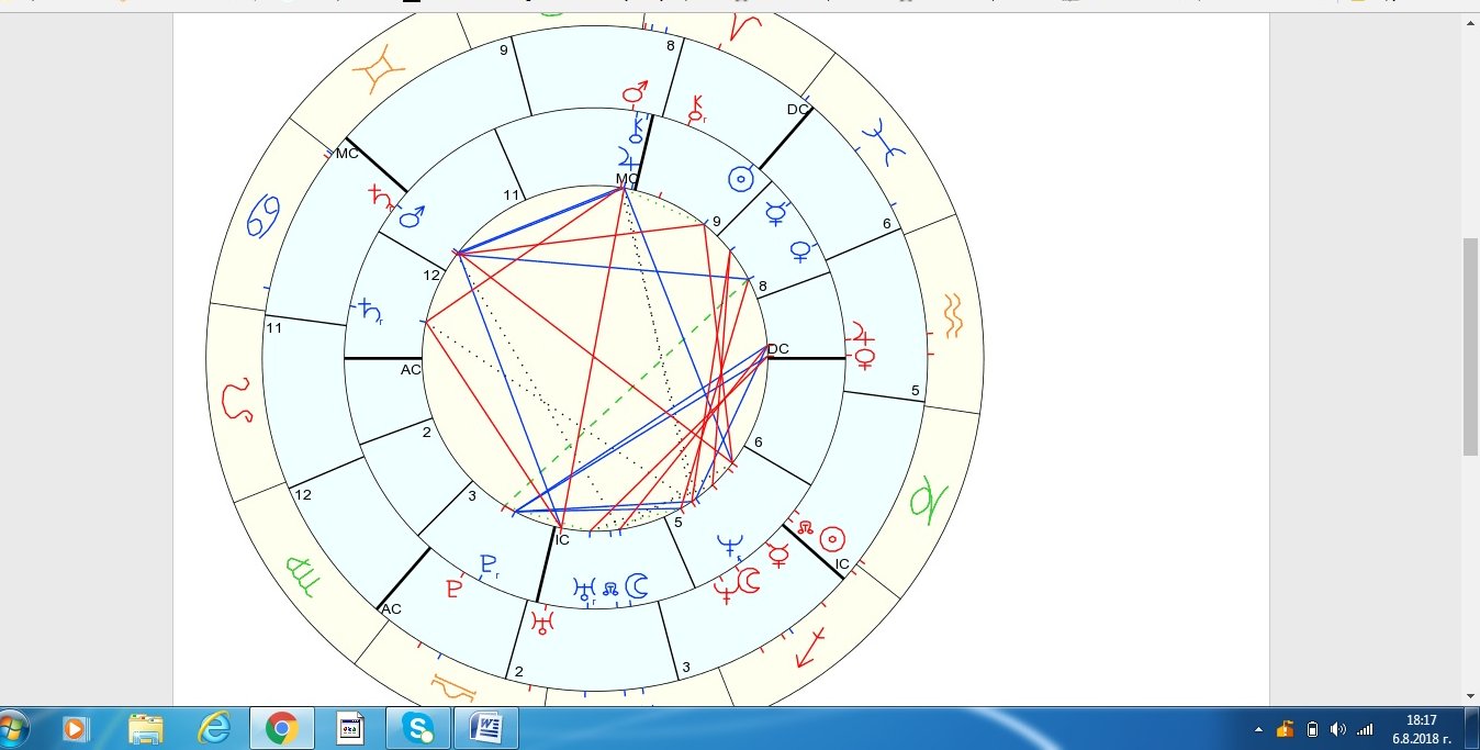 Не търся нещо конкретно, все пак сме заедно сто години, но ми стана интересно какво бихте споделили за тази синастрия/ четох коментарите преди да публикувам картата./ На мен ми се струва, че има прекалено много квадратури и няма никакви съвпади или кой знае какви хармонични, любовни аспекти, обаче съм изключително боса тук.