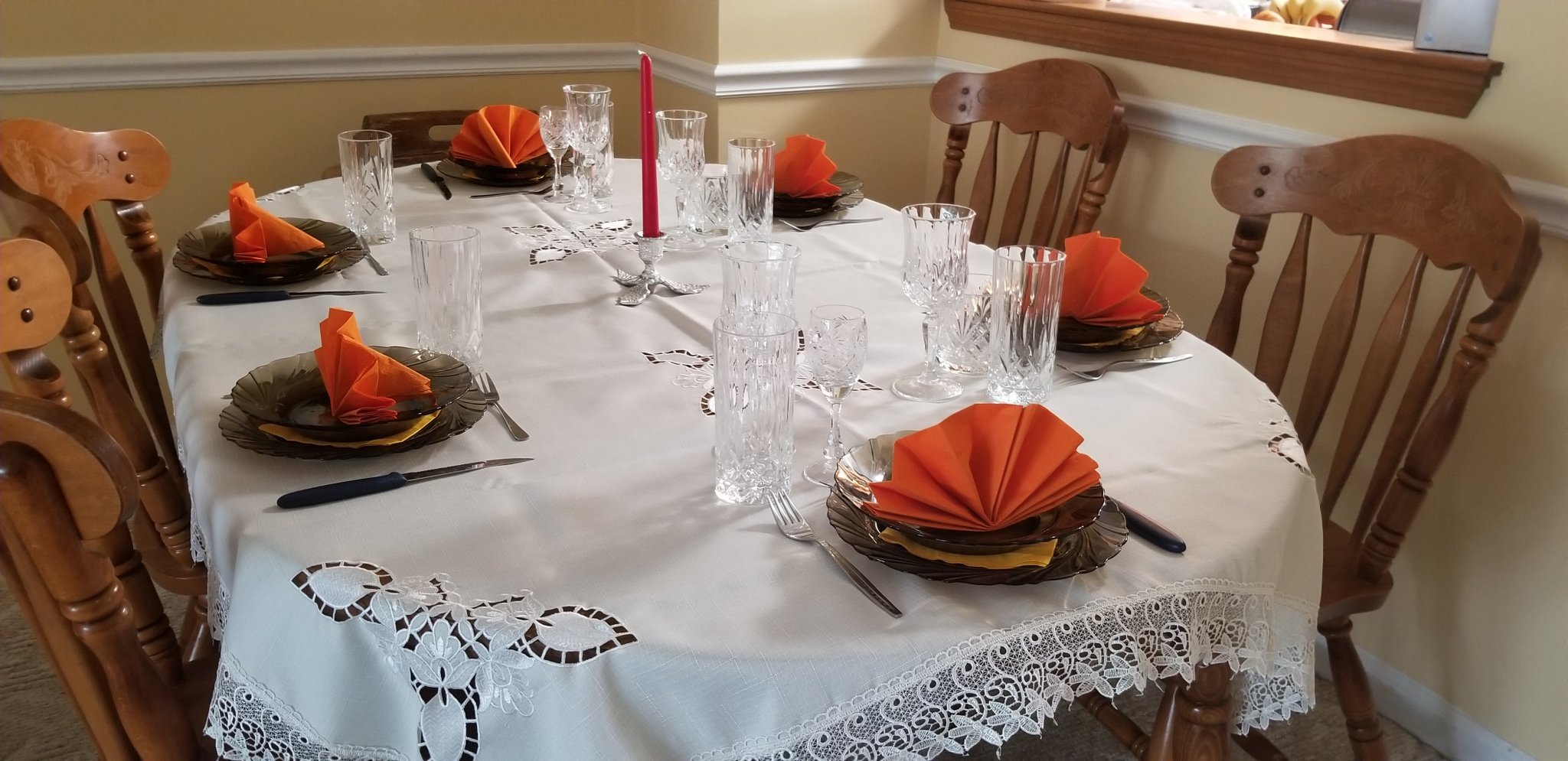Салфетките са оранжеви.Всъщност масата беше замислена по друг начин,но не намерих това,което търсих и затова я подредих така.