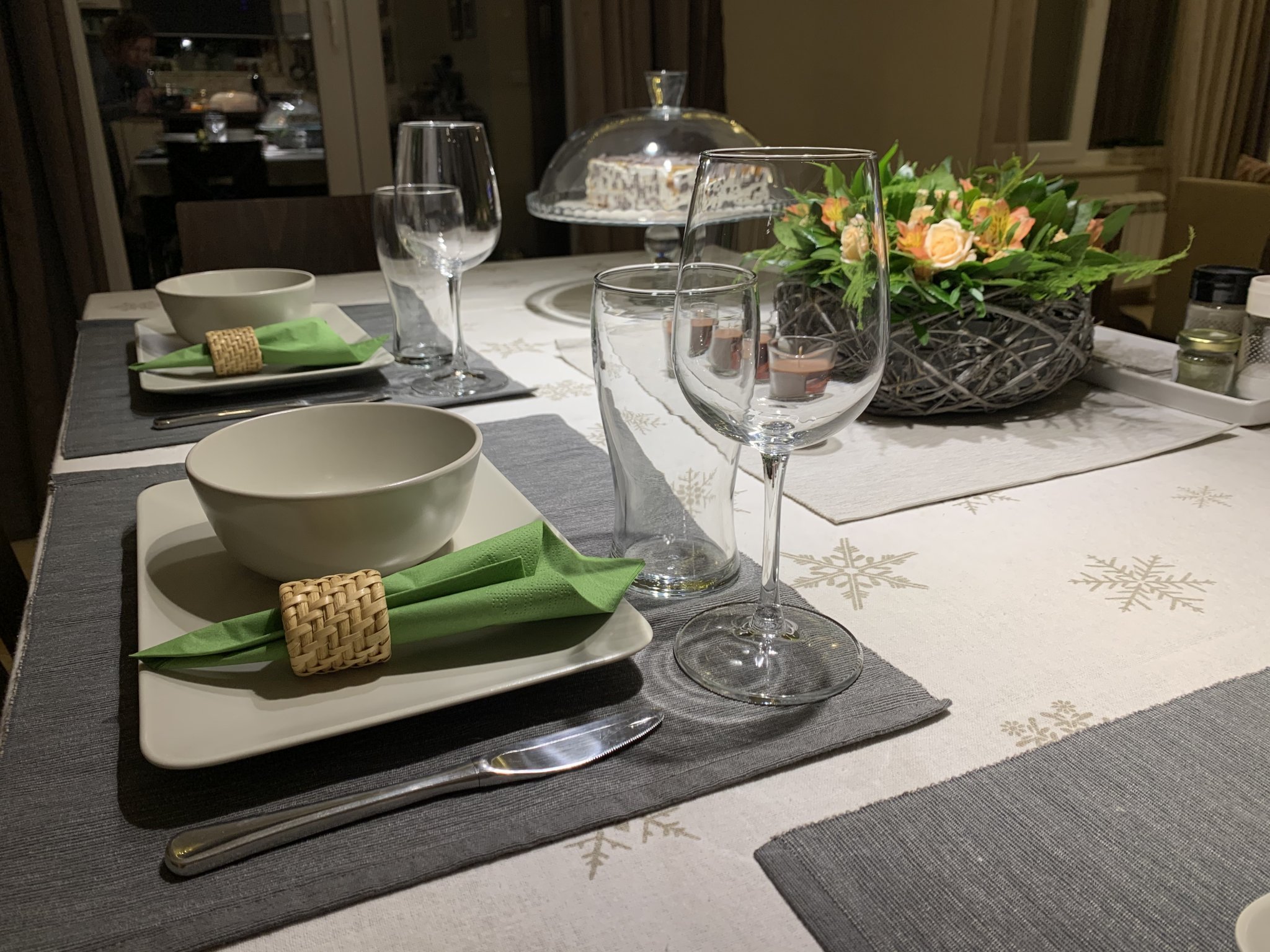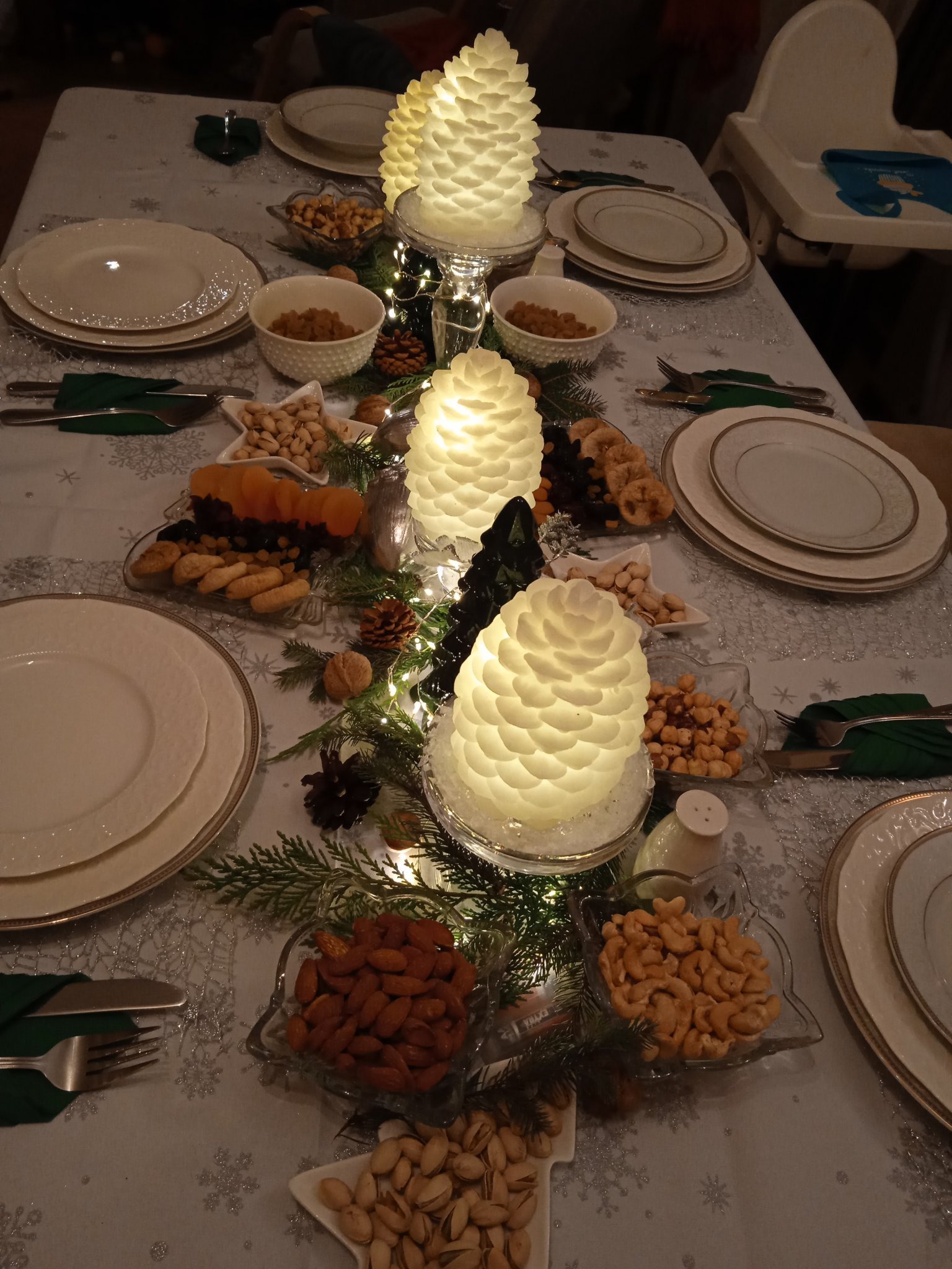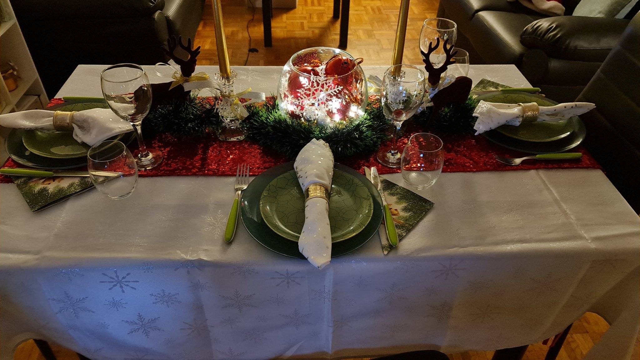 . Долната покривка е чудесна и става и за други зимни декорации - не само коледни. Не ми е хрумвало да сложа тесните подложки на високо, вместо на дълго, а е много, много хитро решение при повече хора на масата.