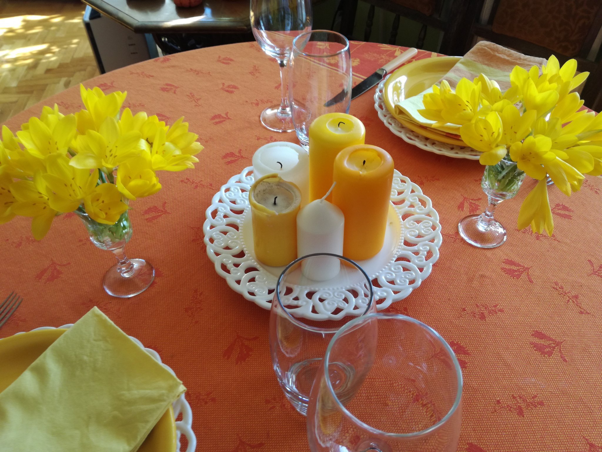 За масата помогнах с гладенето и признавам, с избора на салфетки. А! - и свещниците са моя идея, щото не може през цялото време тортата да стои на масата..