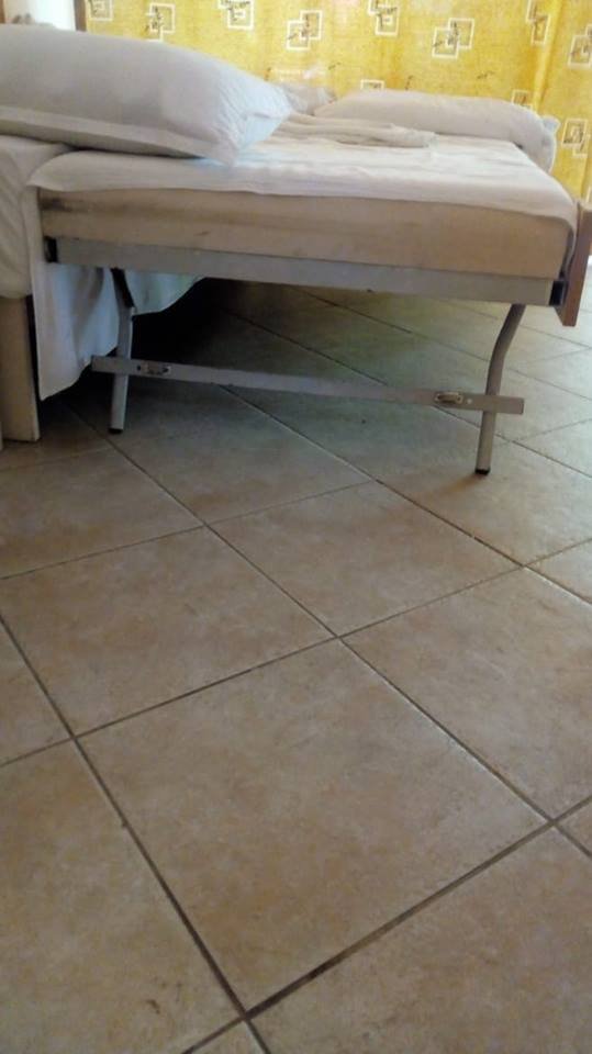 Бунгалото е под всякаква критика.Лек мирис на мухъл, канала в банята сутрин понамирисва.Плесен, мухъл, черно по фугите в банята, мръсно се нанася постоянно.Телевизора беше с повреден кинескоп и преобладаваха виолетовите цветове.Беше ме гнус и не съм оглеждала много.Последния ден си позволих да погледна матрака на моя мъж, имаше черно по него.По допълнителното легло на дъската отдолу имаше също черно.По шалтето на малкия точно преди да си тръгнем видях засъхнало петно кръв.Имаше комарник на прозореца в бунгалото.