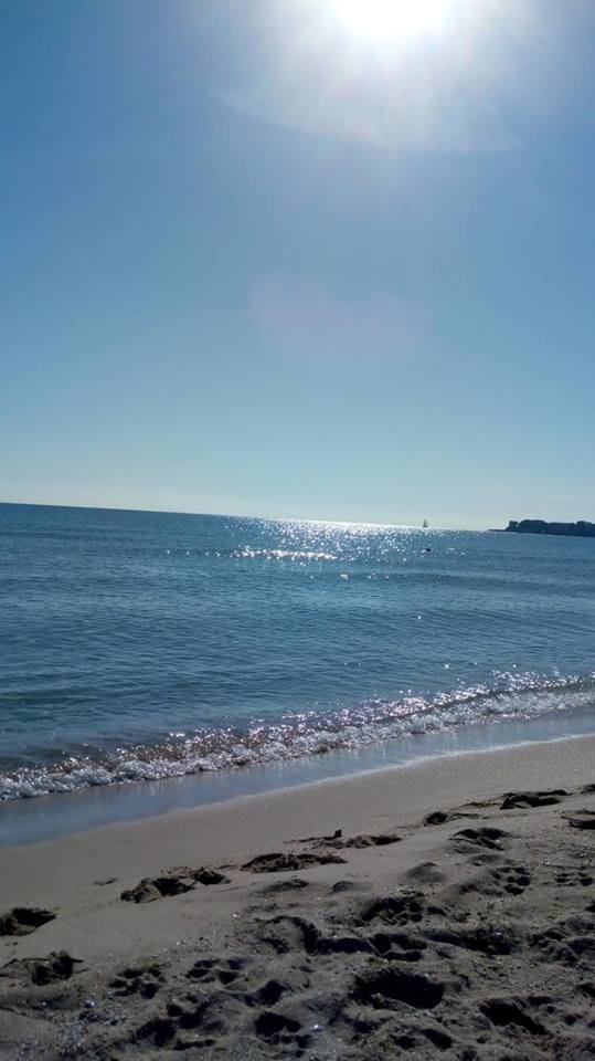 Плажа е хубав, но морето е по-бурно на ММЦ.Първия ден имаше червен флаг, но пускаха в един участък, втория ден жълт, 3-4 ден зелен, 5 ден жълт-имало страшно течение, така каза единияспасител и последния ден отново червен.Та, последния ден като освободихме отидохме на плаж Перла, пълен смях за мен, свободната зона само около 7 метра, с мътна вода, бързо ставащо дълбоко.