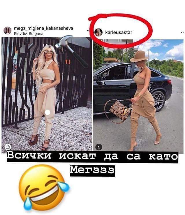 Тя това си обяснява жената от ден първи,ама вие не ,та не ...много фъфлела,нищо не и се разбирало! ТОП талант ! Дрехите не ги купува от китайски сайтове ! НЕ! Само ги избира,поръчва и преправя модела ПО НЕЙНИ СТАНДАРТИ ! Харесва ми как си озаглавява тоалетите в сайта - най-любим сет на Меги , много ,много любим сет на Меги и т.н.