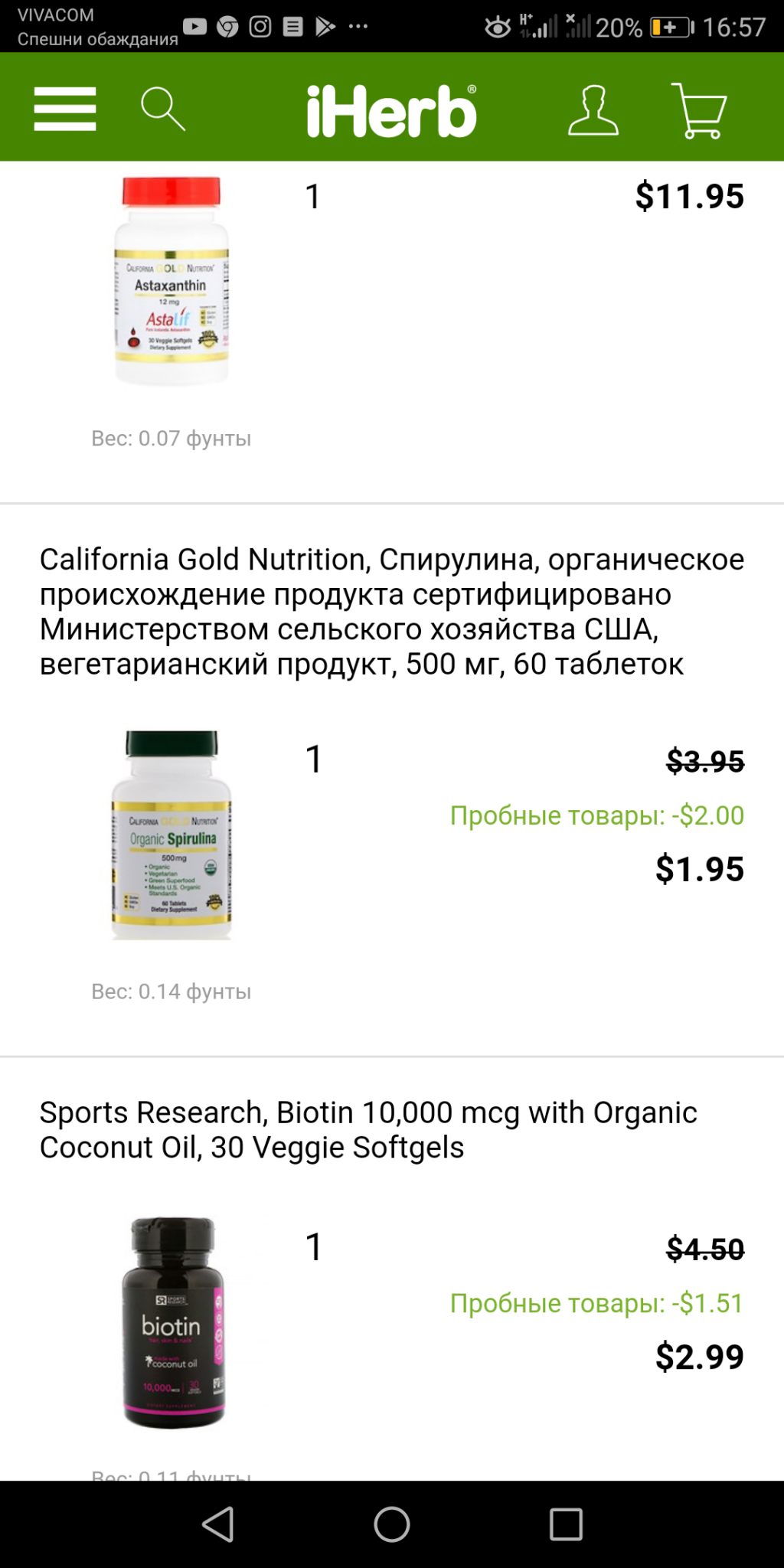 Първа поръчка ще ми е, биотин, спирулина и акстансантин, докарах дотук нещата/ с някои предложени от вас евтини неща,..... /редактирано/