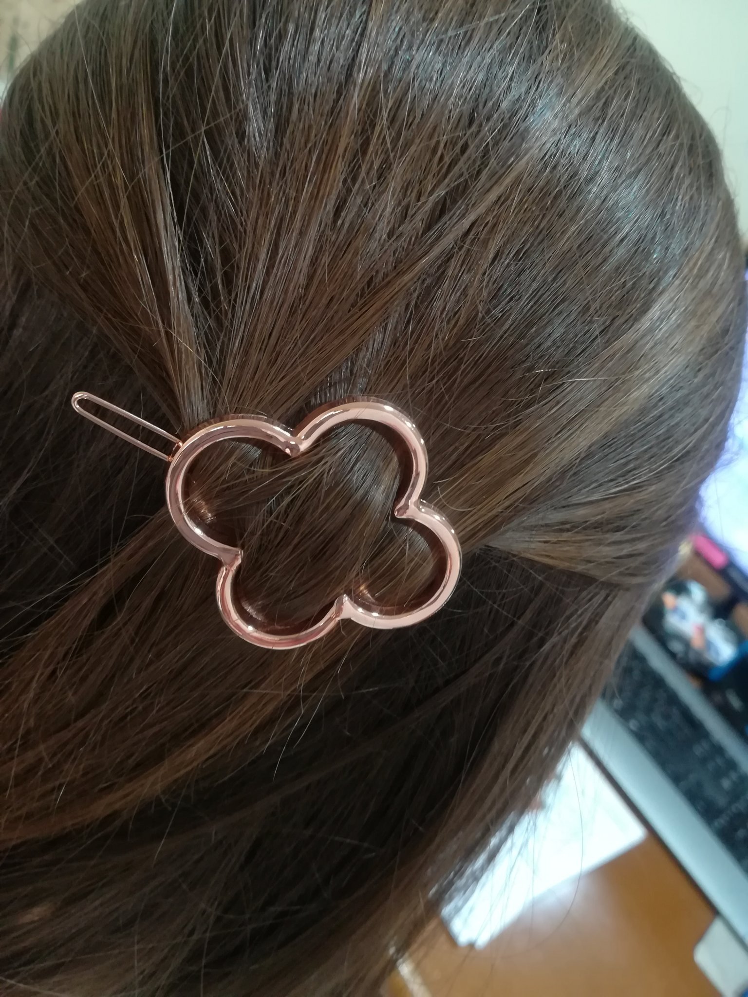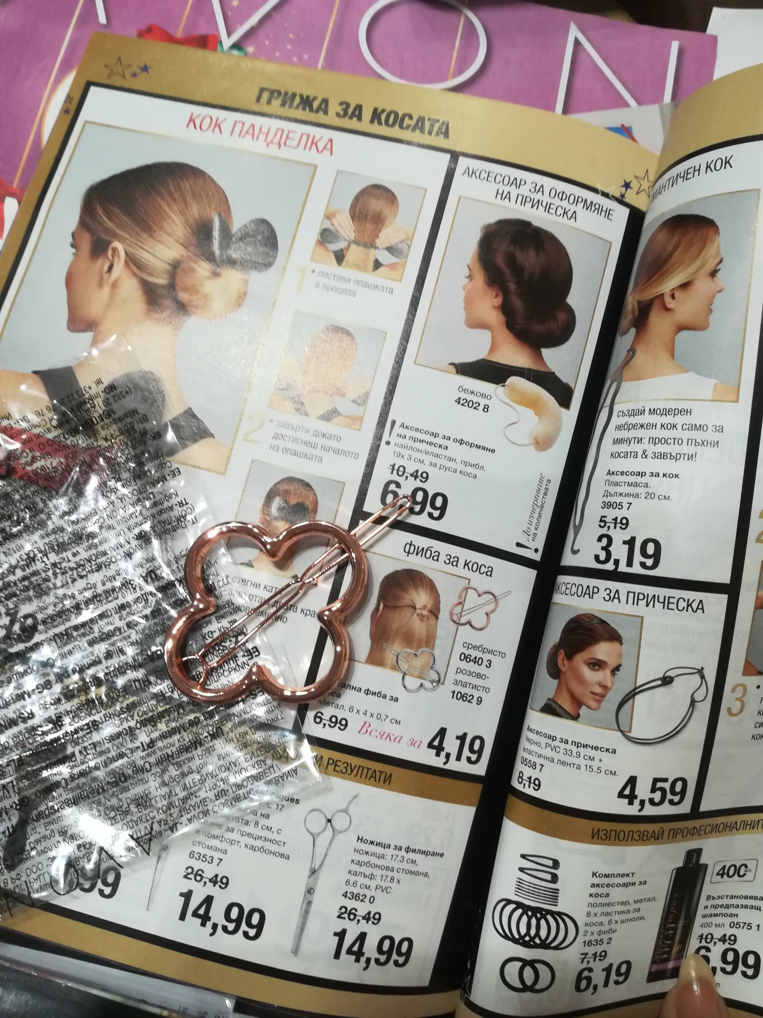 Часовника с мраморен ефект и фибата в розово злато се оказаха много добри попадения. Вчера цял ден бях с нея на главата и не ми се изхлузи.