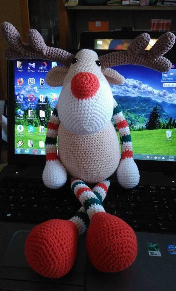 А плета коледни играчки между другите.Един коледен Рудолф.