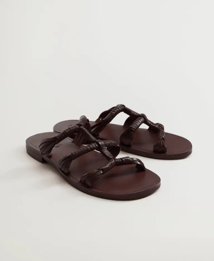Предлагам  нови чехли от естествена кожа. Стелката е от телешки кожа, а каишките - от козя. 38 номер - отговарят на номера. 15 лв. Тъмнокафяви на цвят. https://www.mangooutlet.com/bg/women/shoes/leather-straps-sandal … &busqref=true