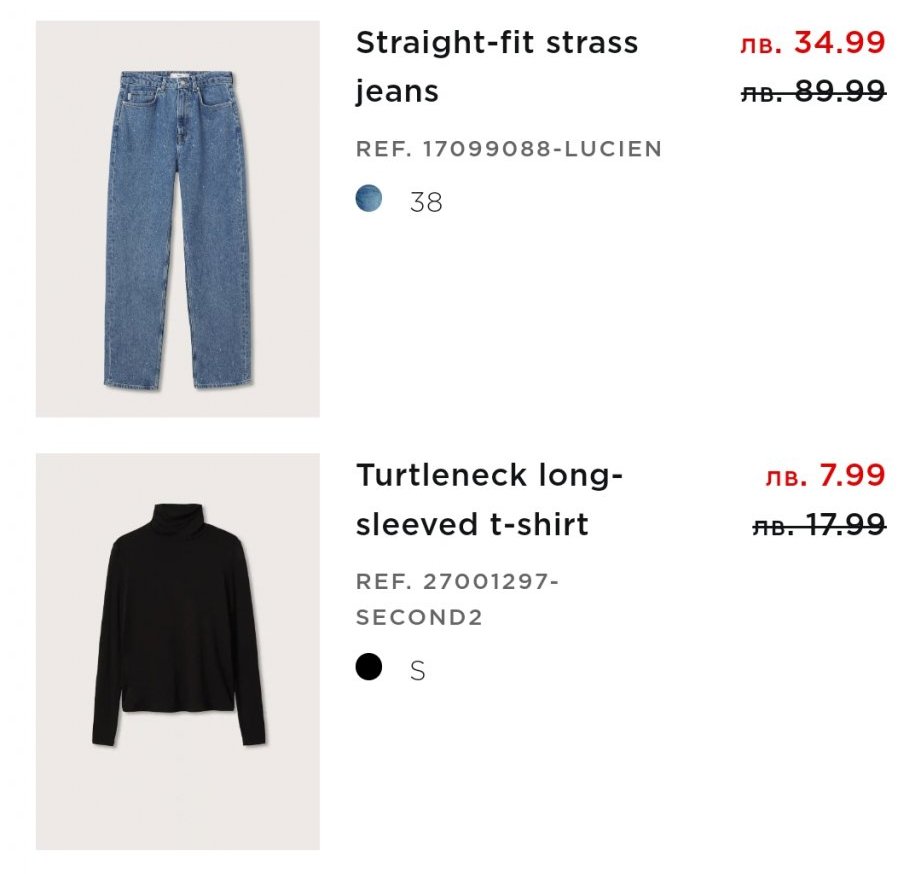 И тази размер xs, която беше на цена жт 14 лв. https://www.mangooutlet.com/bg/women/dresses-and-jumpsuits-midi/ … 045.html?c=76&n=1