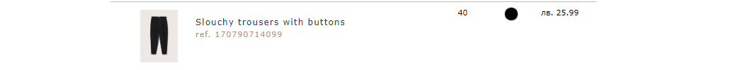И последно, черен панталон номер 40, този път леко уголемен на цена от 25.99 лв. Мога да го нося и така, но на фигура с малко по-широка талия ще е перфектен. Аз съм с малка обиколка в тази част на тялото и ми е широк. Материята е хубава, подходяща за модела, оригинална кройка, може да се носи при различни случай и комбинира в различни стилове.