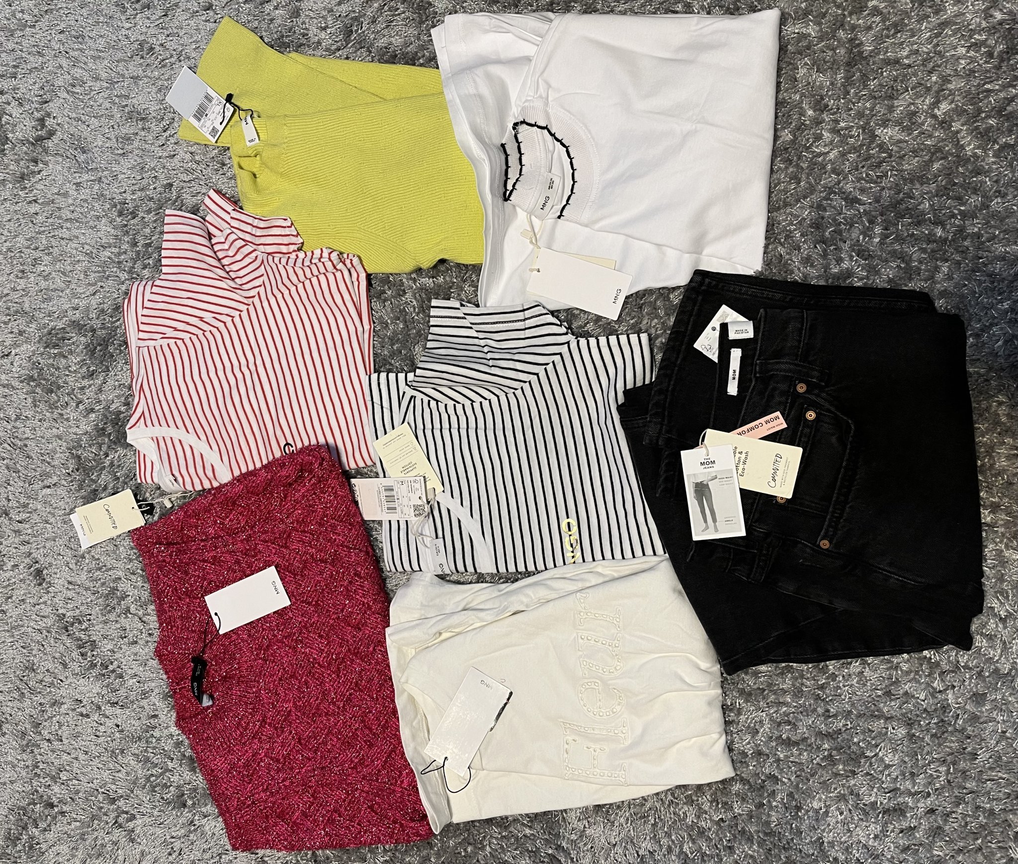 Явно аз като по чудо съм уцелила всички размери (с едно изключение), вчера пристигна моята пратка, първата ми е от манго аутлет, много ми харесва всичко, и за майка ми имаше подарък едно зелено яке но него го няма на снимката защото още вчера и го подарих "за Коледа"😂. И леля ми си поръча с мен същото яке като на майка ми и един кожен бордо панталон, много бяха хубави но забравих да ги снимам. Това са моите неща, дънките са ми леко големи но това няма да е така след празниците😂😂👌🏻!