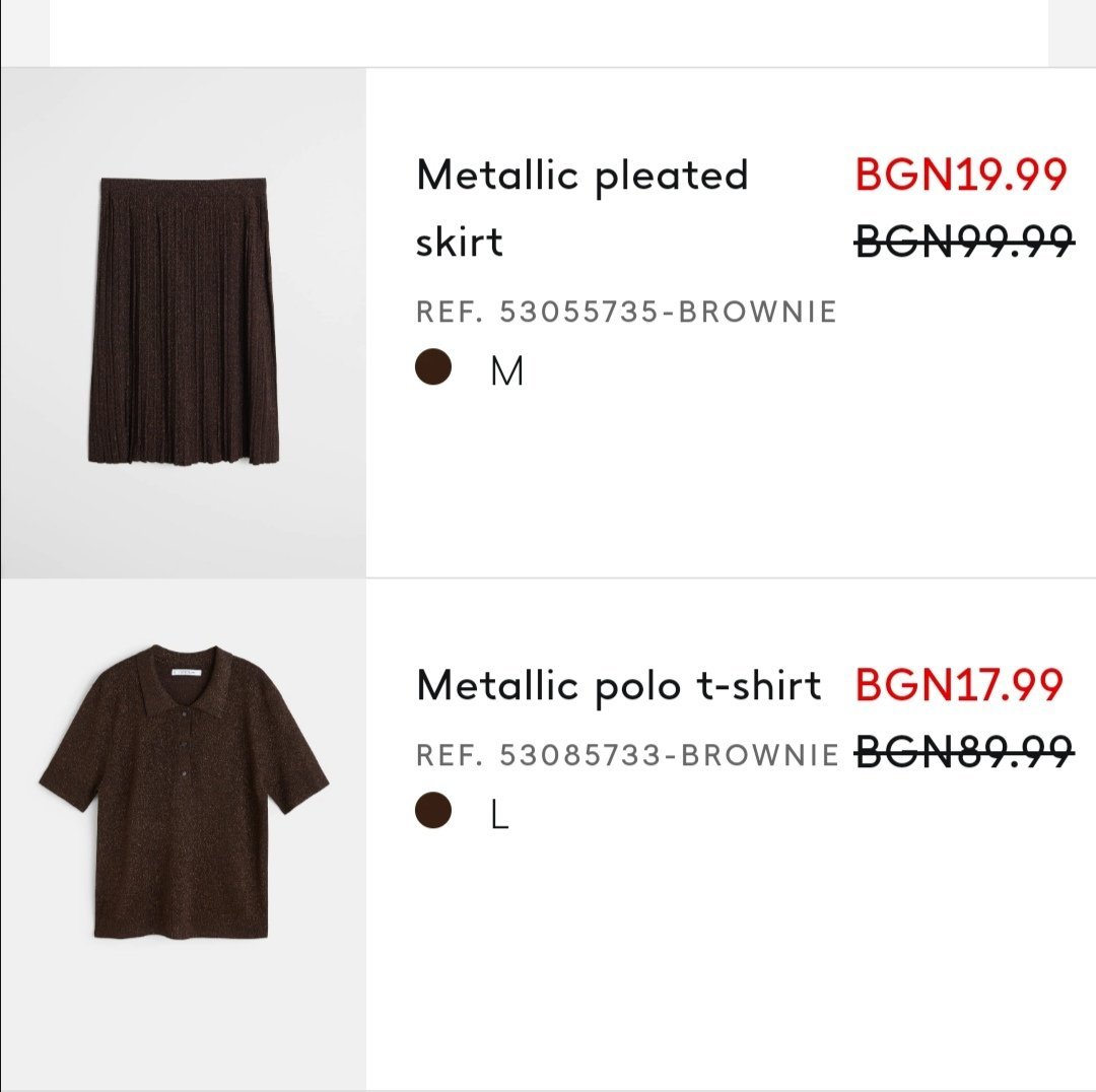 пола M и блуза L също от Виолета, с метална нишка, шоколадово кафяви са, много хубави