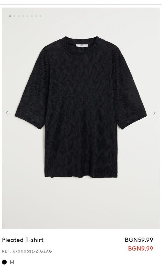 Две приятни тениски, но съм се надцелила. Много са широки. https://www.mangooutlet.com/bg/women/t-shirts-and-tops/pleated-t … &busqref=true