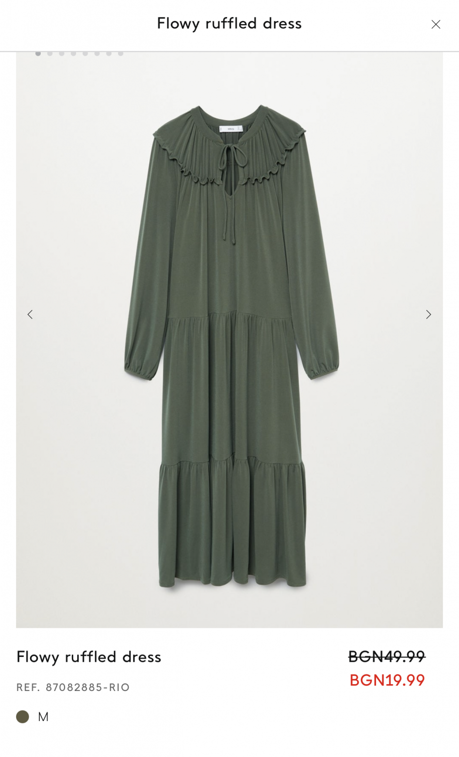 И за тази рокля не съм сигурна, че е моята. Размер М, мисля, че отговаря https://www.mangooutlet.com/bg/women/dresses-and-jumpsuits/flowy … &busqref=true