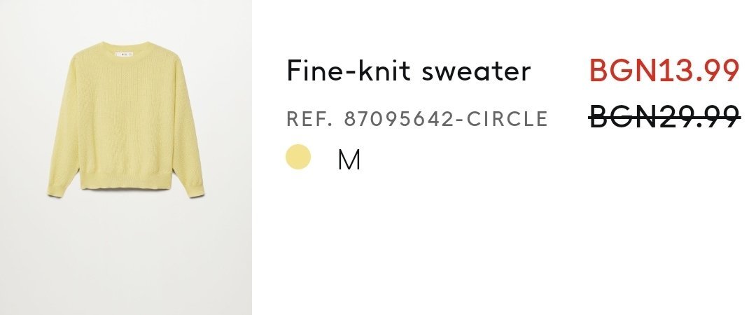 https://www.mangooutlet.com/bg/women/cardigans-and-sweaters/ribb … &busqref=true  Жилетка - М размер в жълто. Отговаря си. Малко намачкани дойдоха, но иначе е хубава. Поръчала съм две в бързината.