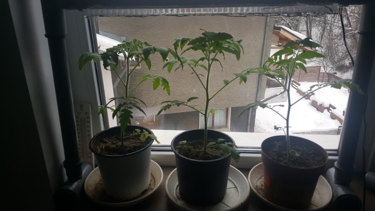 Ние с мъжа ми се забавляваме зимно с 3 коренчета домати. Растат си щастливо на прозореца с доосветяване. Едва ли ще видим домат от тях, но пък са зеленички и като им пипнеш листата се разнася летен доматен аромат.