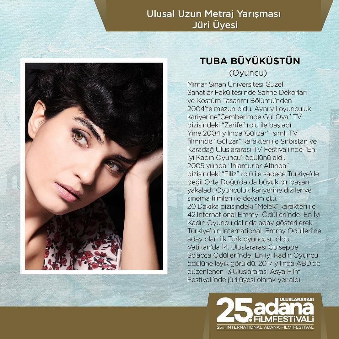 Официальные аккаунты фестиваля в Адане разместили визитную карточку Тубы как члена жюри. В ней ее биография и основные творческие достижения.