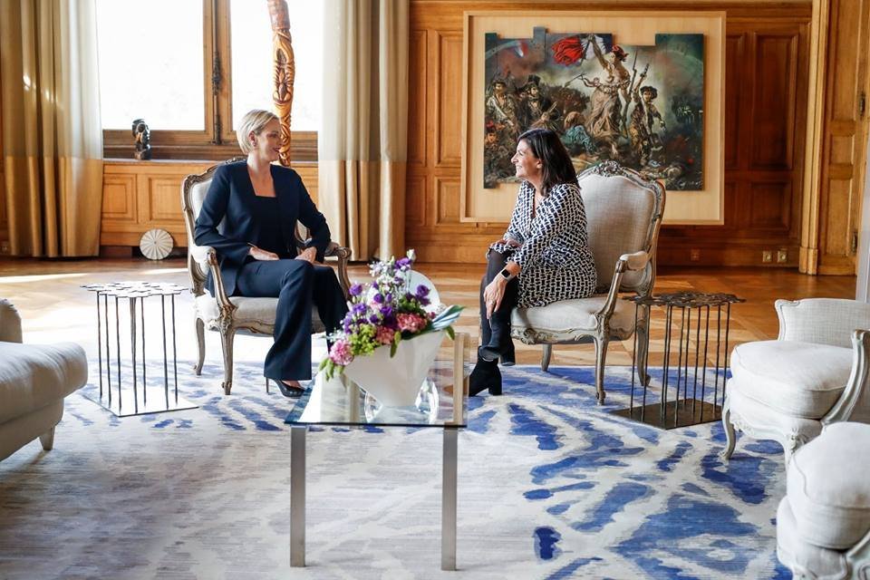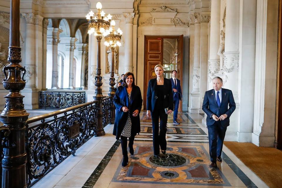 Принцесата на Монако на визита в Париж покрай някакво заседание на Международната автомобилна федерация, харесва ми на тези снимки, има живец в нея.