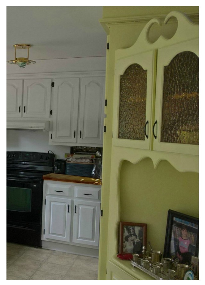 Не можете да видите останалата част от кухнята и хола (заедно са) , но имам и две стени в жълтата гама и се връзват с жълтия шкаф.